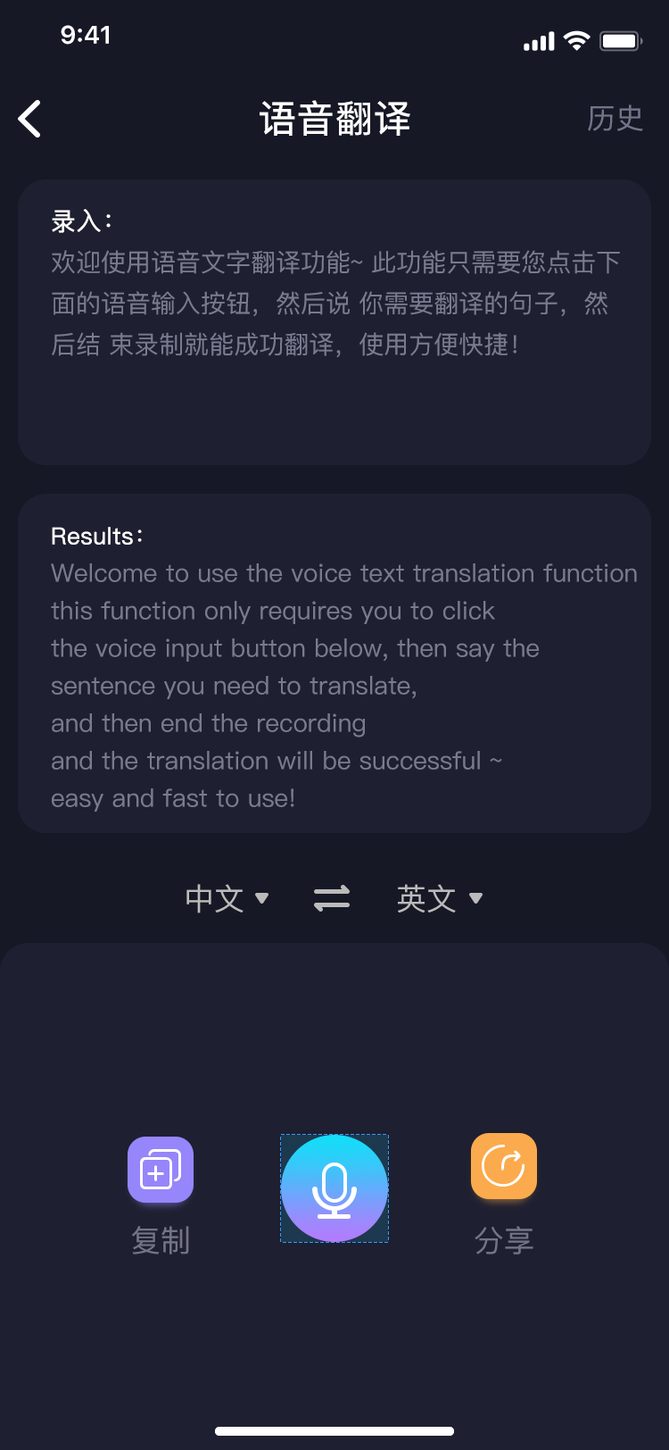 支持中文、英语、法语等语种实时在线翻译,快速识别,精准转换